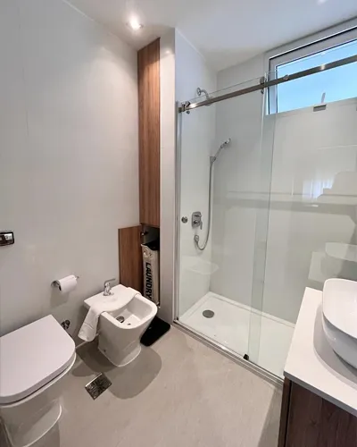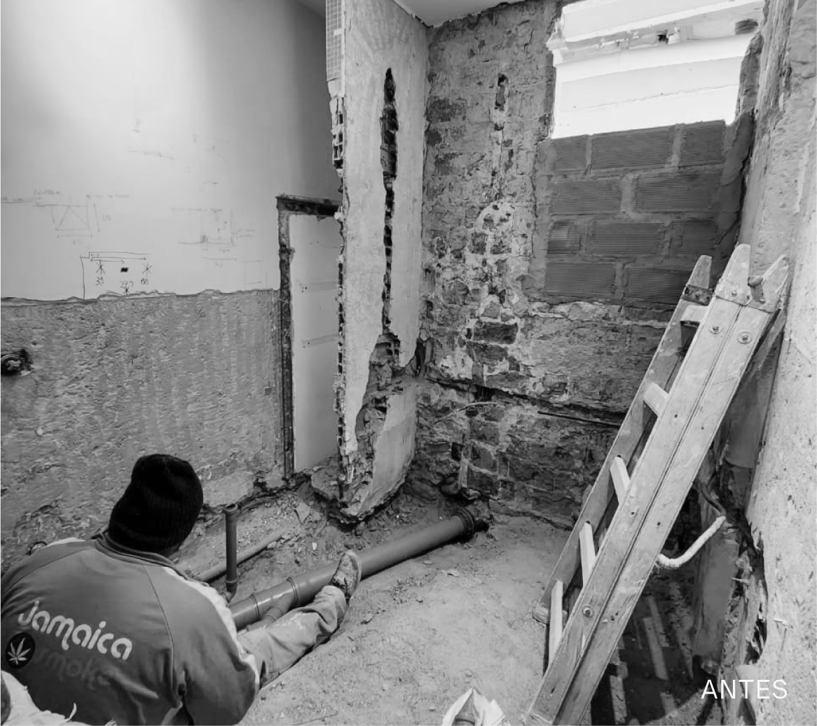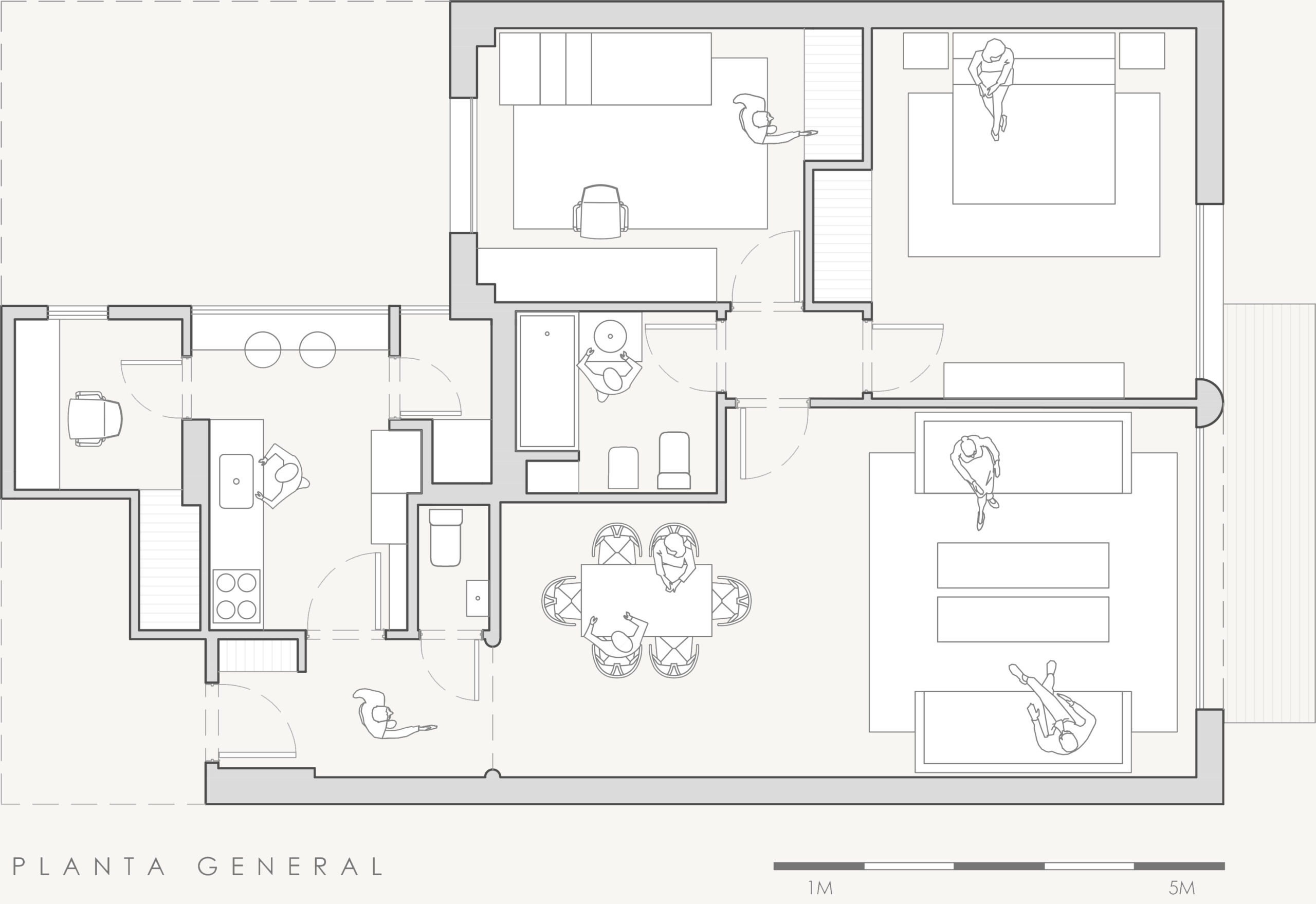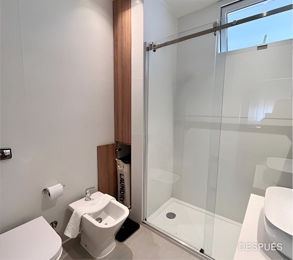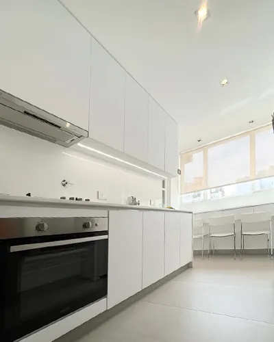 Proyecto residencial en la ciudad donde se modernizaron cocina y baƱo principalmente para lograr una imagen moderna, clara y pulida; donde la luz de ciudad atraviesa los frentes vidriados y resalta las superficies blancas y continuas.