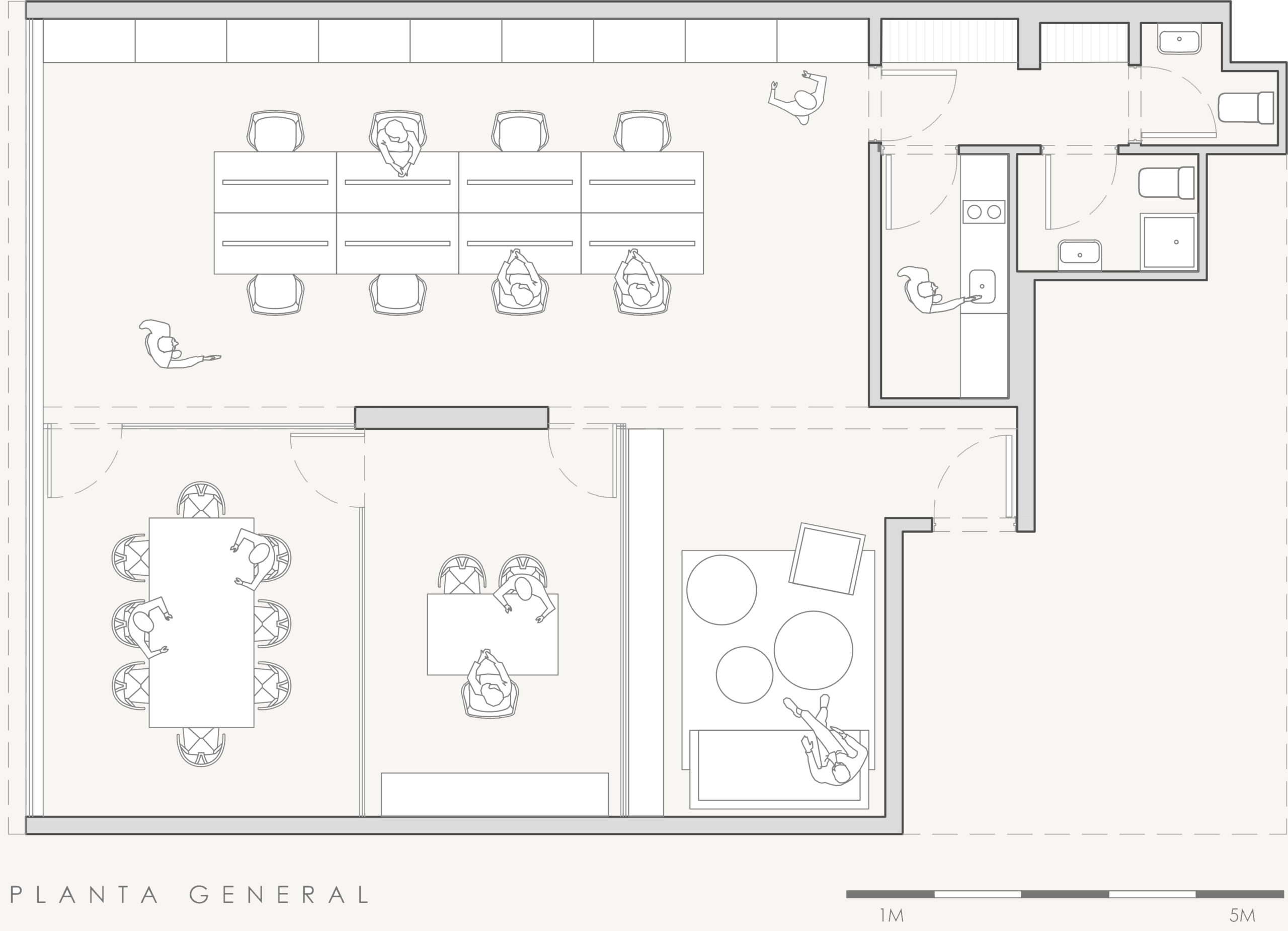 Proyecto de oficinas en Vicente López para una empresa que busco transmitir una imagen contemporánea y generar con sensación de confort en un ambiente un ambiente calmo, productivo y minimalista a través de una paleta neutra blanco–gris–beige con acentos negros y verde intenso de vegetación.